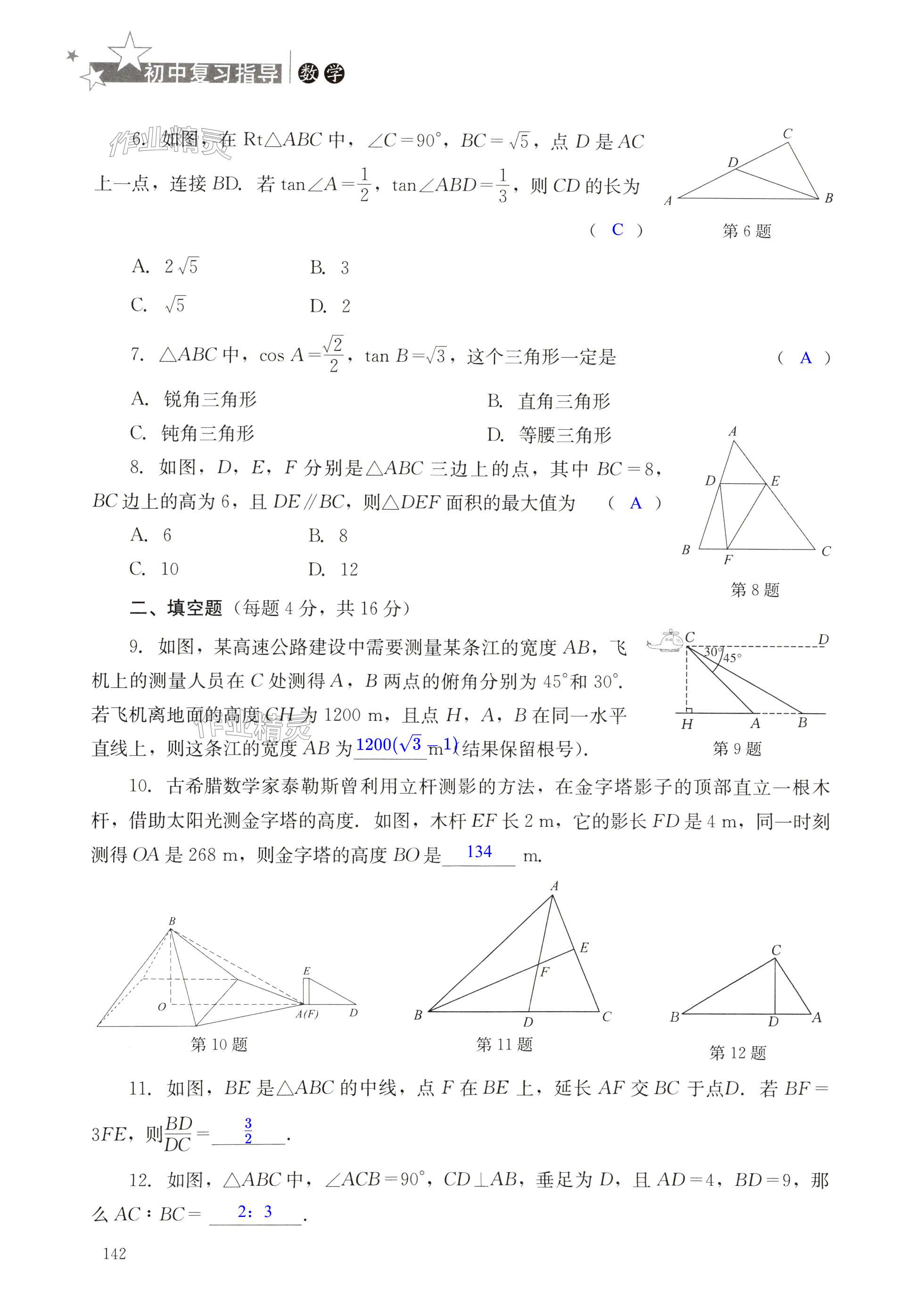 注:目前有些书本章节名称可能整理的还不是很完善,但都是按照顺序排列的,请同学们按照顺序仔细查找。练习册 2025年初中复习指导中考数学 答案主要是用来给同学们做完题方便对答案用的,请勿直接抄袭。