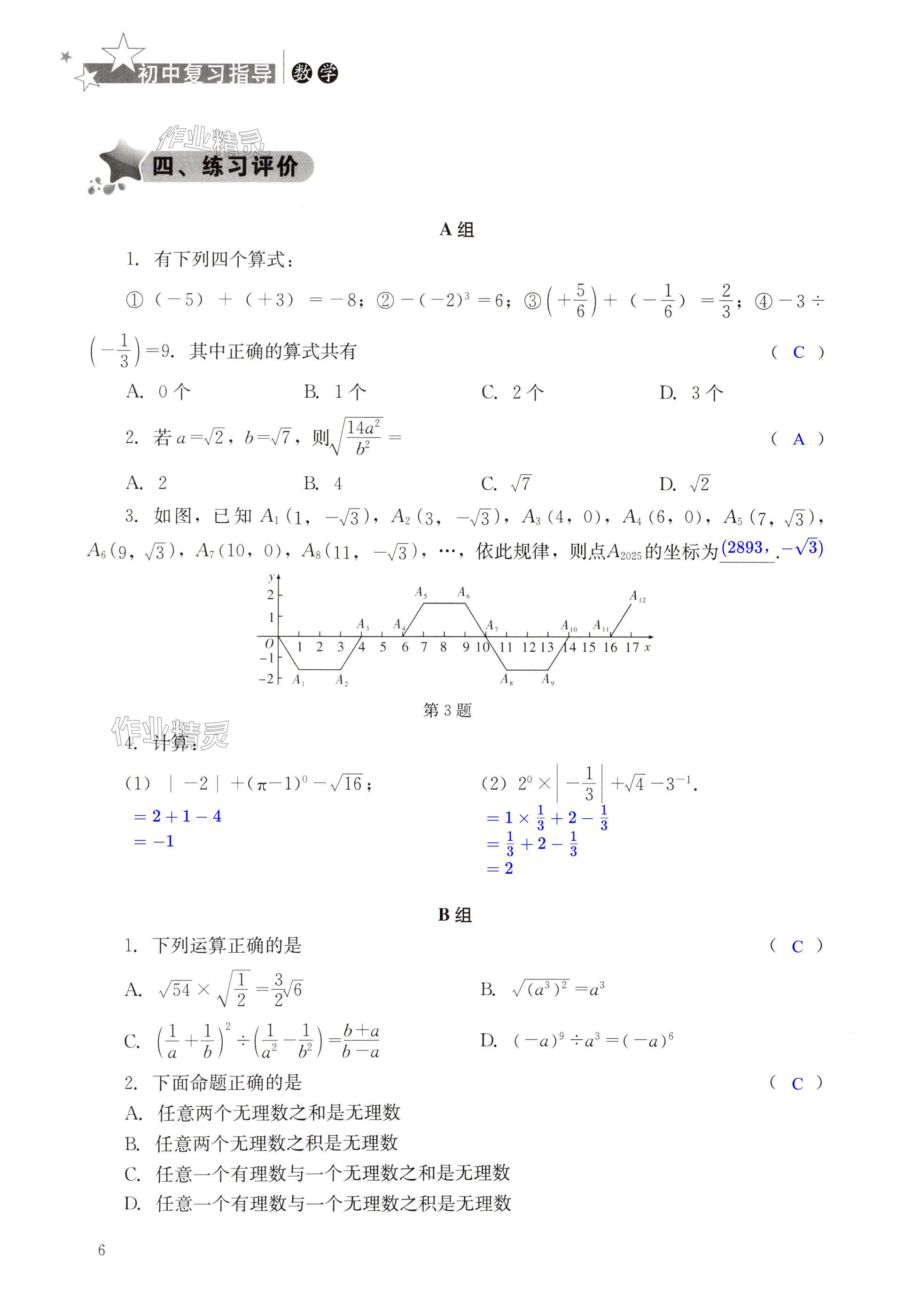 注:目前有些书本章节名称可能整理的还不是很完善,但都是按照顺序排列的,请同学们按照顺序仔细查找。练习册 2025年初中复习指导中考数学 答案主要是用来给同学们做完题方便对答案用的,请勿直接抄袭。