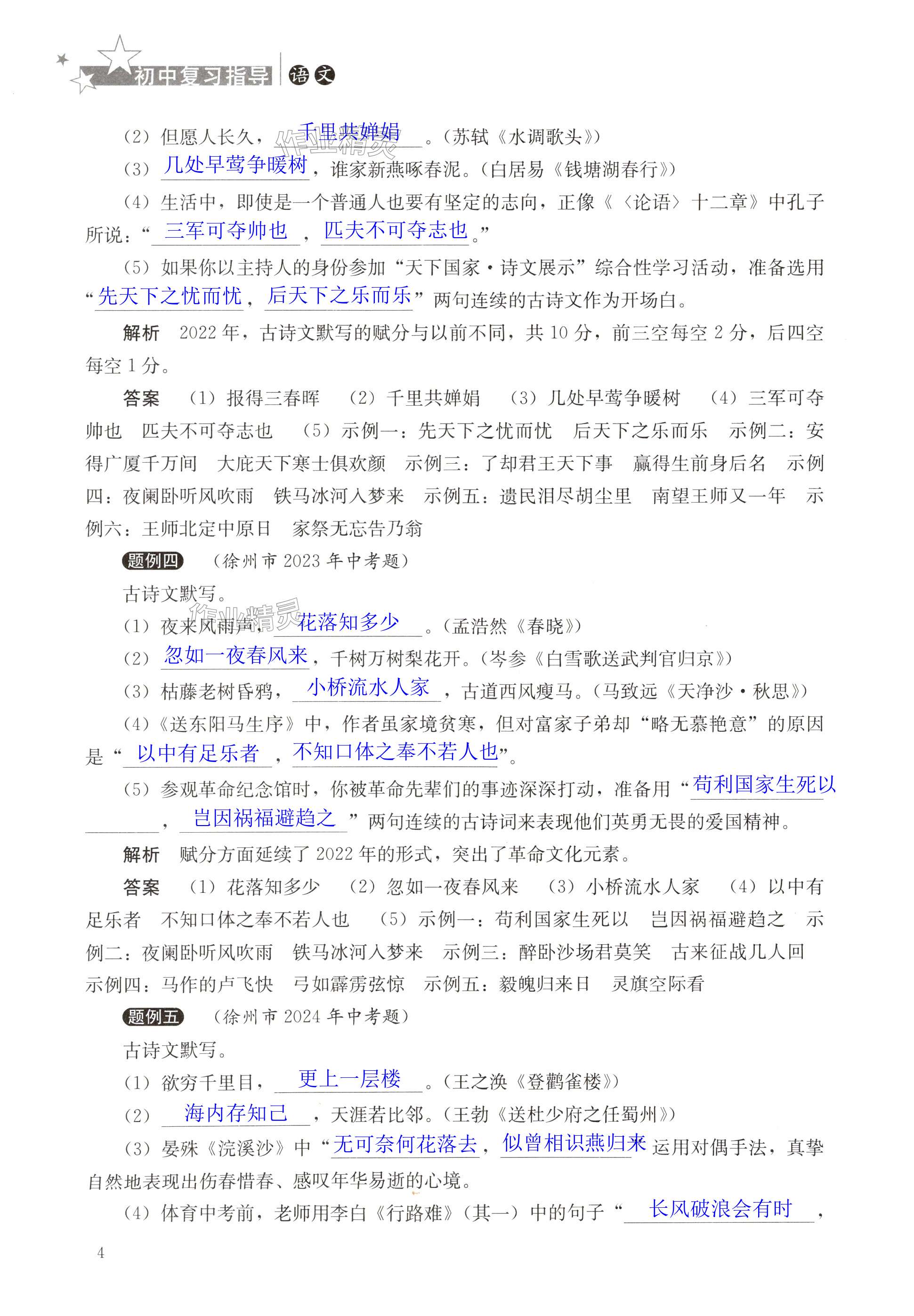 注:目前有些书本章节名称可能整理的还不是很完善,但都是按照顺序排列的,请同学们按照顺序仔细查找。练习册 2025年初中复习指导中考语文 答案主要是用来给同学们做完题方便对答案用的,请勿直接抄袭。