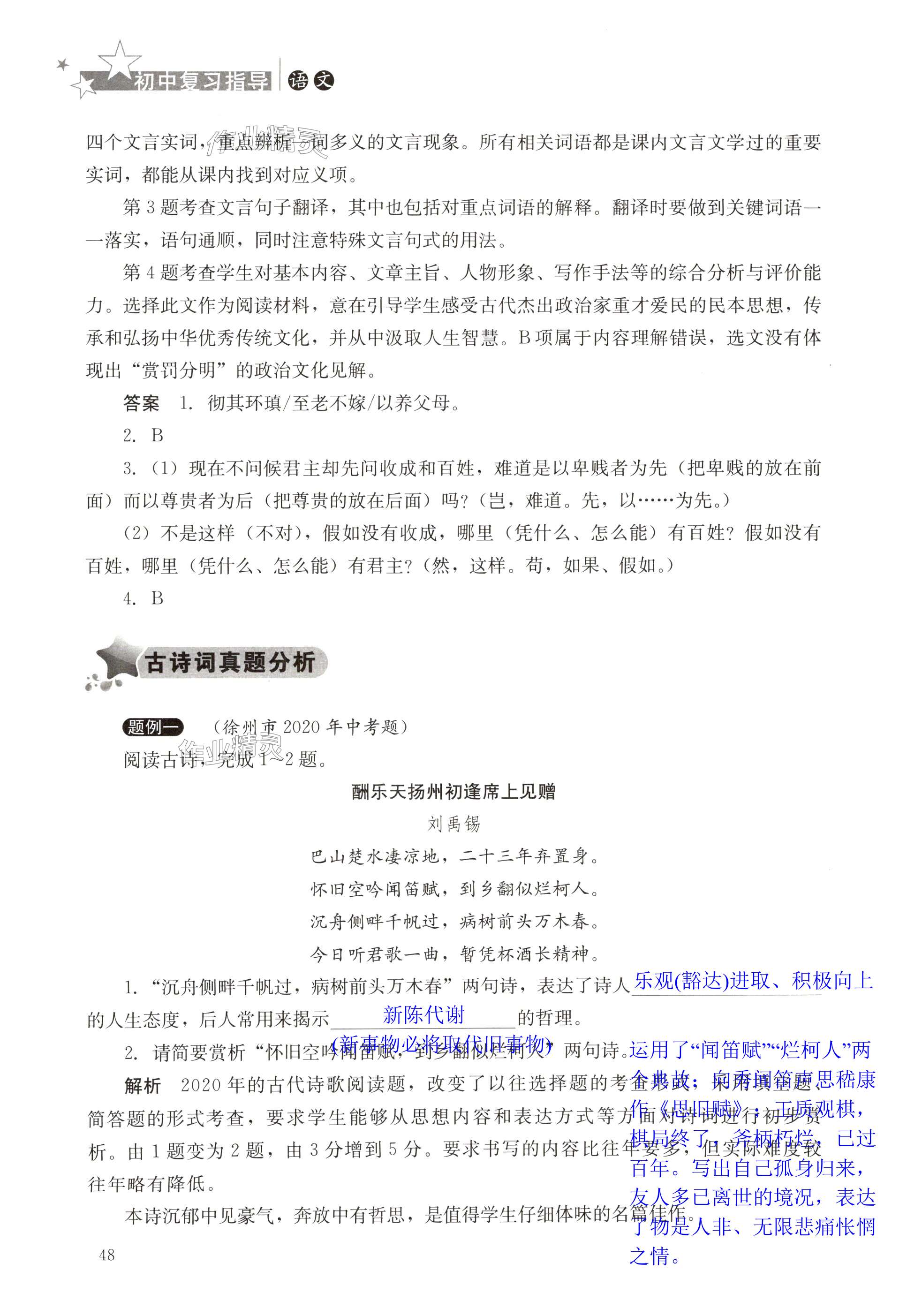 注:目前有些书本章节名称可能整理的还不是很完善,但都是按照顺序排列的,请同学们按照顺序仔细查找。练习册 2025年初中复习指导中考语文 答案主要是用来给同学们做完题方便对答案用的,请勿直接抄袭。