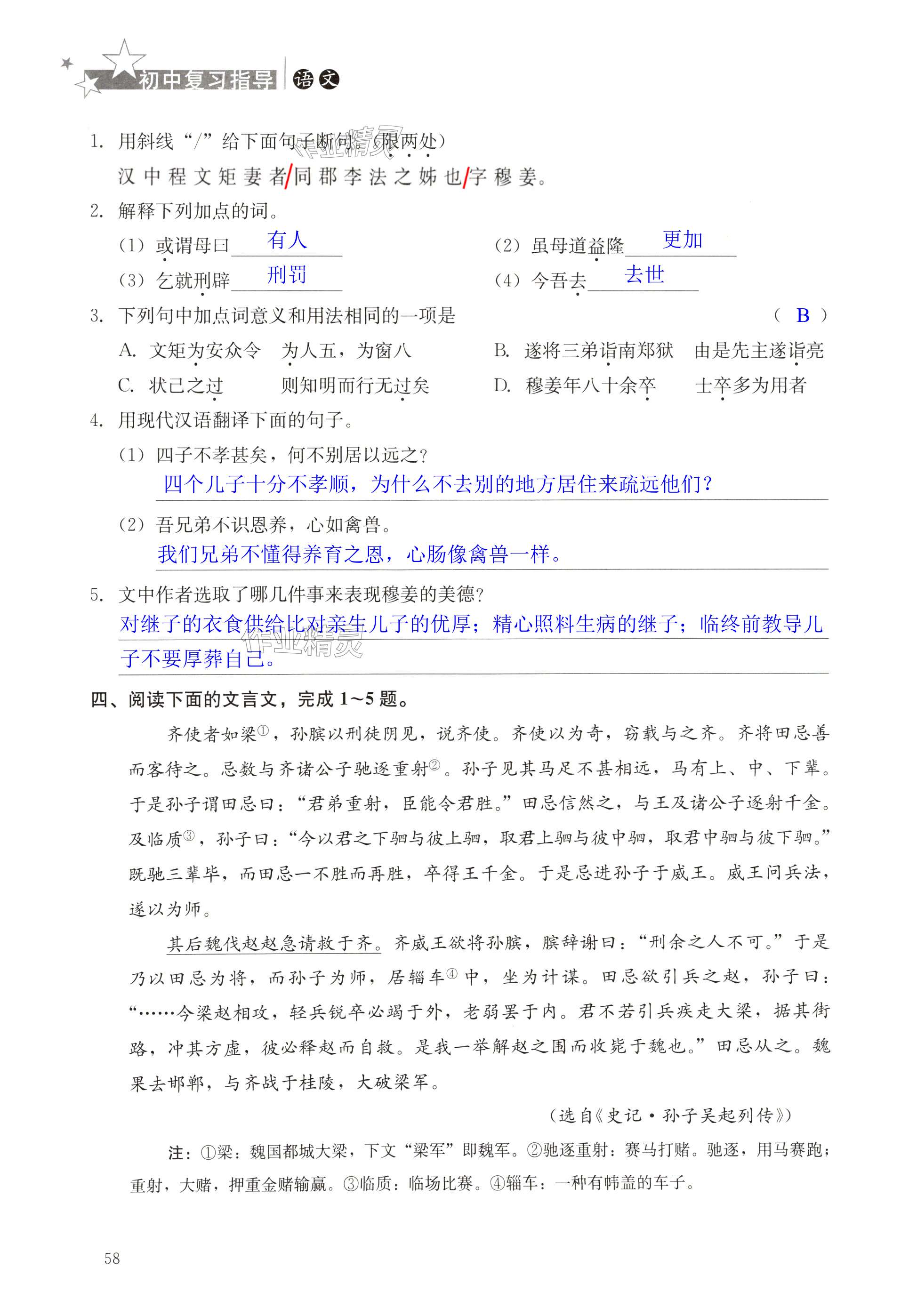 注:目前有些书本章节名称可能整理的还不是很完善,但都是按照顺序排列的,请同学们按照顺序仔细查找。练习册 2025年初中复习指导中考语文 答案主要是用来给同学们做完题方便对答案用的,请勿直接抄袭。
