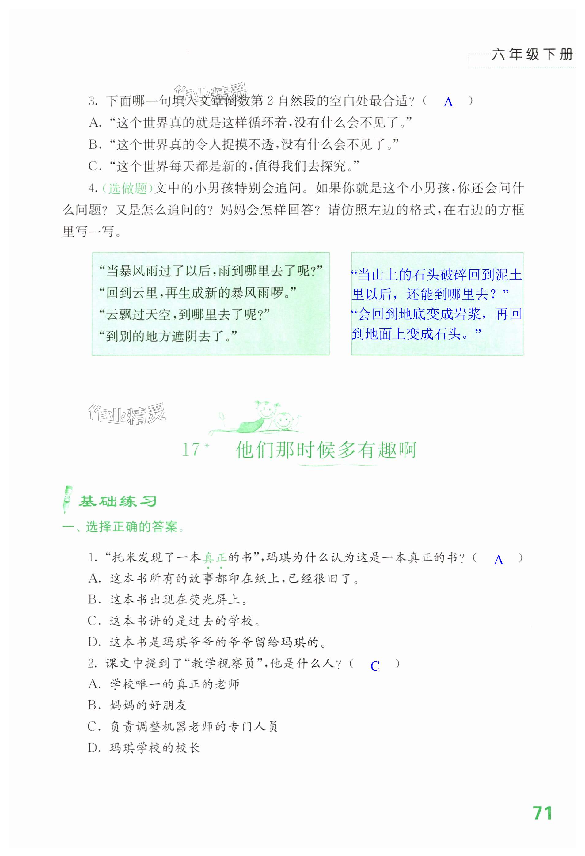 注:目前有些书本章节名称可能整理的还不是很完善,但都是按照顺序排列的,请同学们按照顺序仔细查找。练习册 2025年练习与测试六年级语文下册人教版 答案主要是用来给同学们做完题方便对答案用的,请勿直接抄袭。