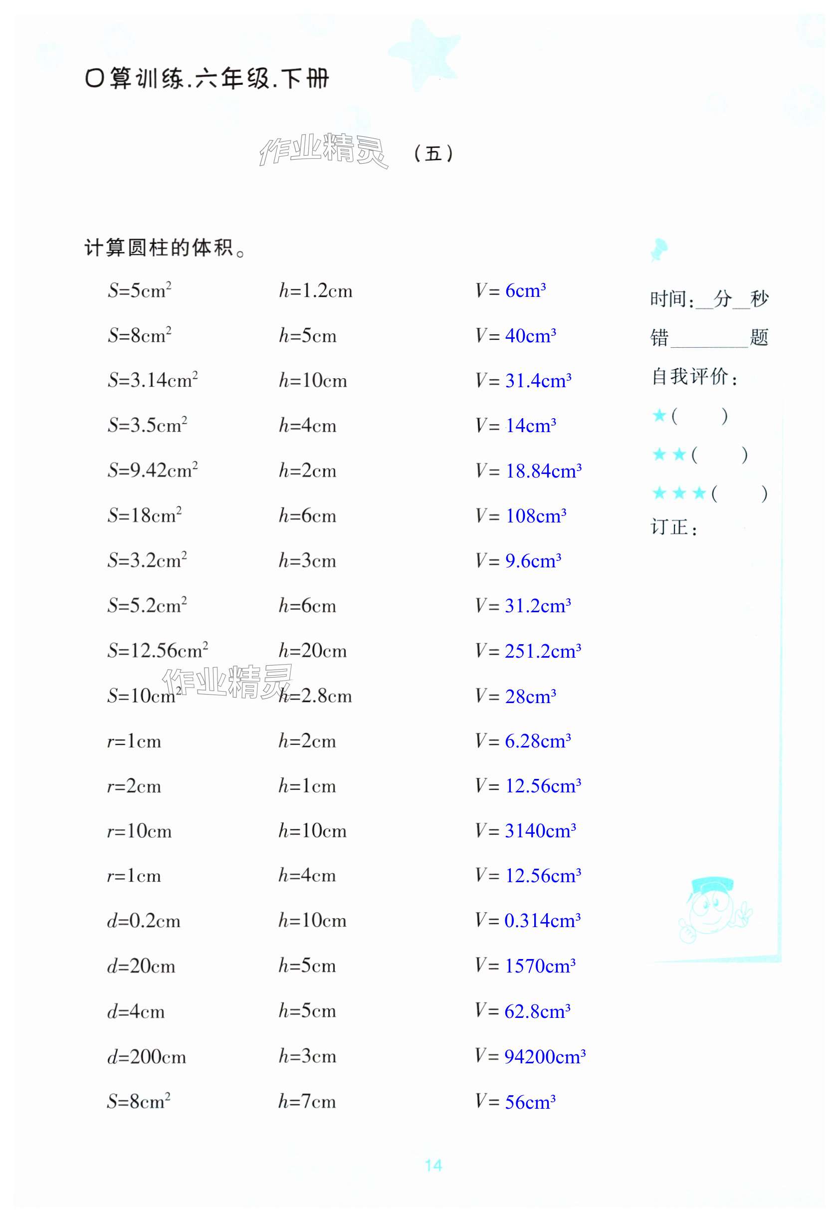 注:目前有些书本章节名称可能整理的还不是很完善,但都是按照顺序排列的,请同学们按照顺序仔细查找。练习册 2025年口算训练宁波出版社六年级数学下册人教版 答案主要是用来给同学们做完题方便对答案用的,请勿直接抄袭。