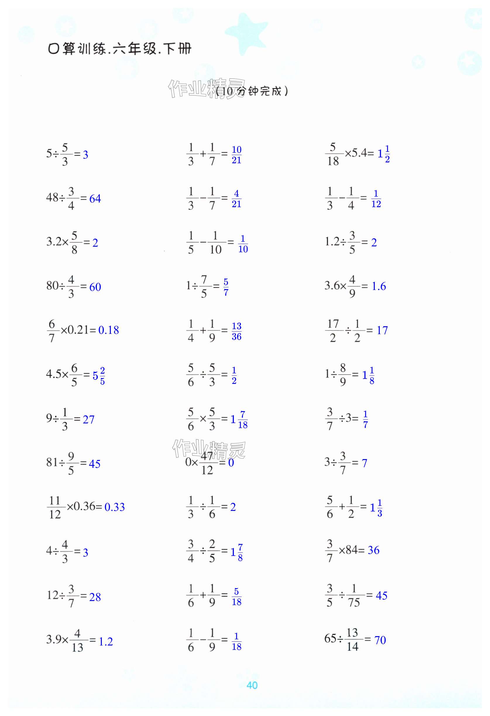 注:目前有些书本章节名称可能整理的还不是很完善,但都是按照顺序排列的,请同学们按照顺序仔细查找。练习册 2025年口算训练宁波出版社六年级数学下册人教版 答案主要是用来给同学们做完题方便对答案用的,请勿直接抄袭。