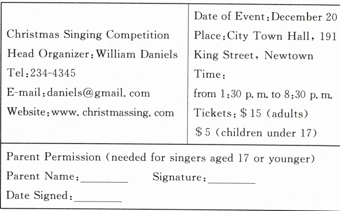 ( )40. If an 18 - year - old singer wants to enter the competition, which part(s) of the form must be completed?