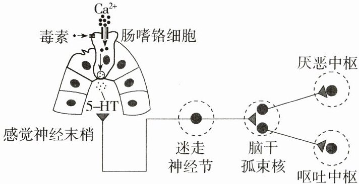 (1)食物中的毒素与肠嗜铬细胞膜上特异性受体结合后,引发Ca²⁺以_________方式进入细胞。