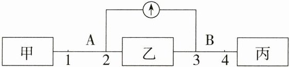 7.如图是某反射弧结构的模式图,其中乙表示神经中枢,甲、丙未知。神经元A、B上的1、2、3、4为四个实验位点。现欲探究A是传出神经元还是传入神经元,某研究小组将电表的两个电极分别搭在位点2和位点3的神经纤维膜外侧。下列说法正确的是 ( )