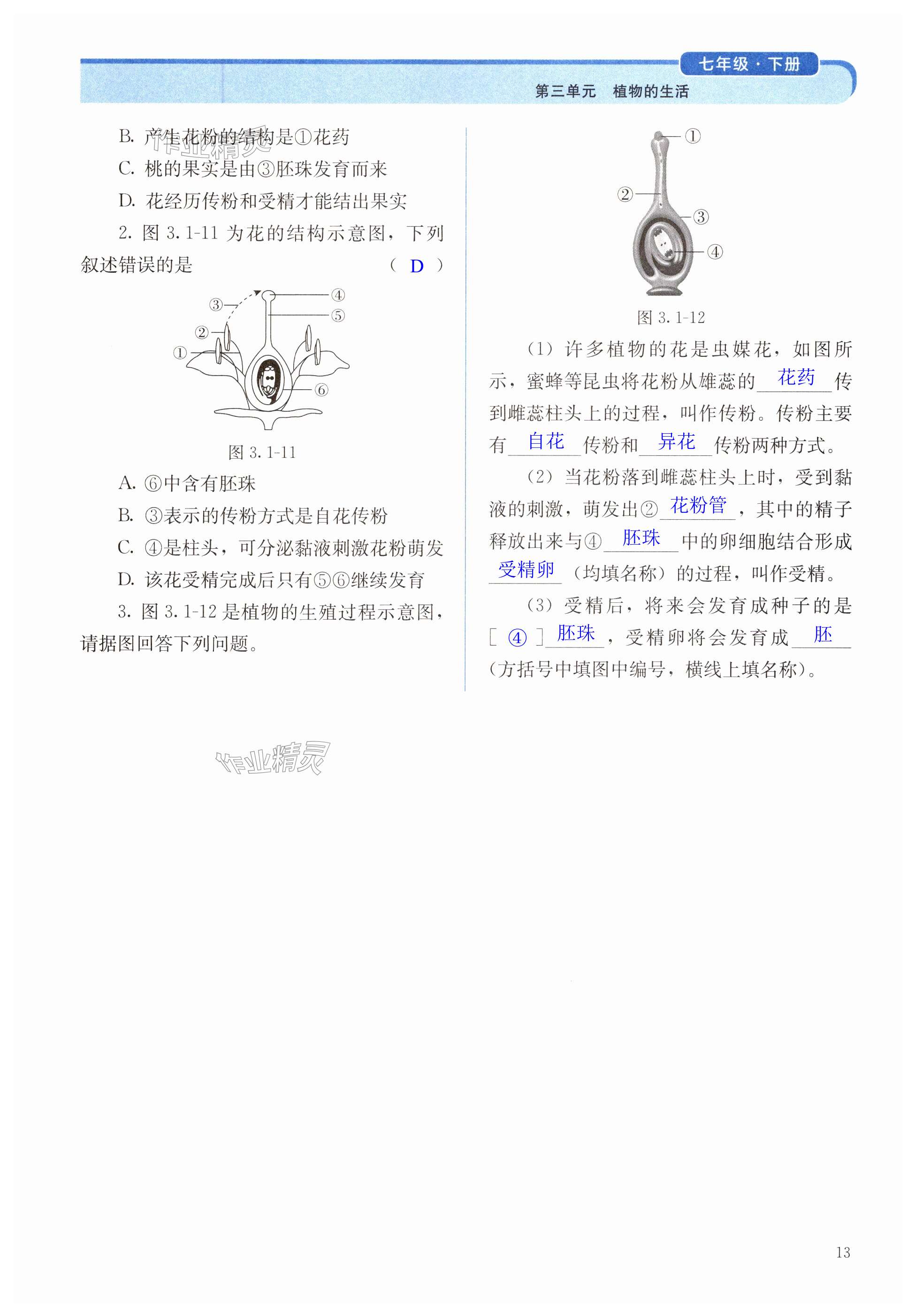 注:目前有些书本章节名称可能整理的还不是很完善,但都是按照顺序排列的,请同学们按照顺序仔细查找。练习册 2025年人教金学典同步练习册同步解析与测评七年级生物下册人教版山西专版 答案主要是用来给同学们做完题方便对答案用的,请勿直接抄袭。
