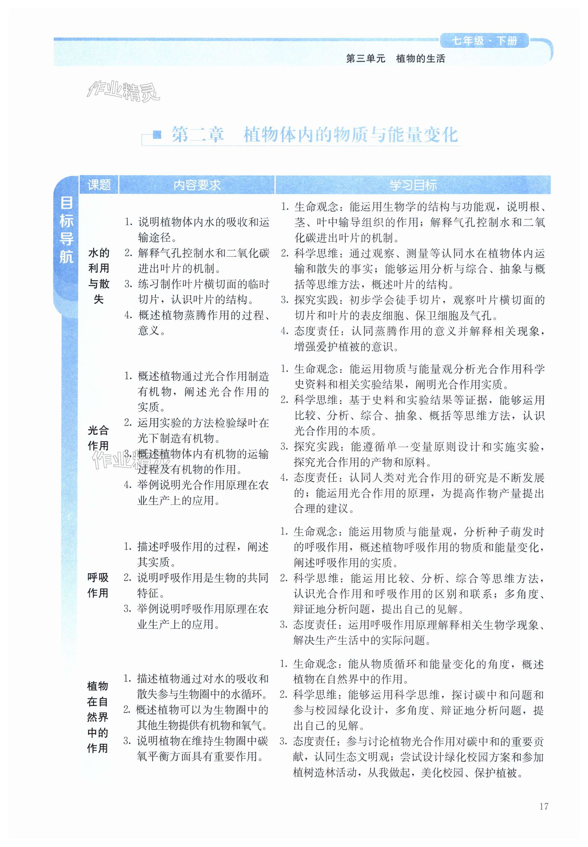 注:目前有些书本章节名称可能整理的还不是很完善,但都是按照顺序排列的,请同学们按照顺序仔细查找。练习册 2025年人教金学典同步练习册同步解析与测评七年级生物下册人教版山西专版 答案主要是用来给同学们做完题方便对答案用的,请勿直接抄袭。