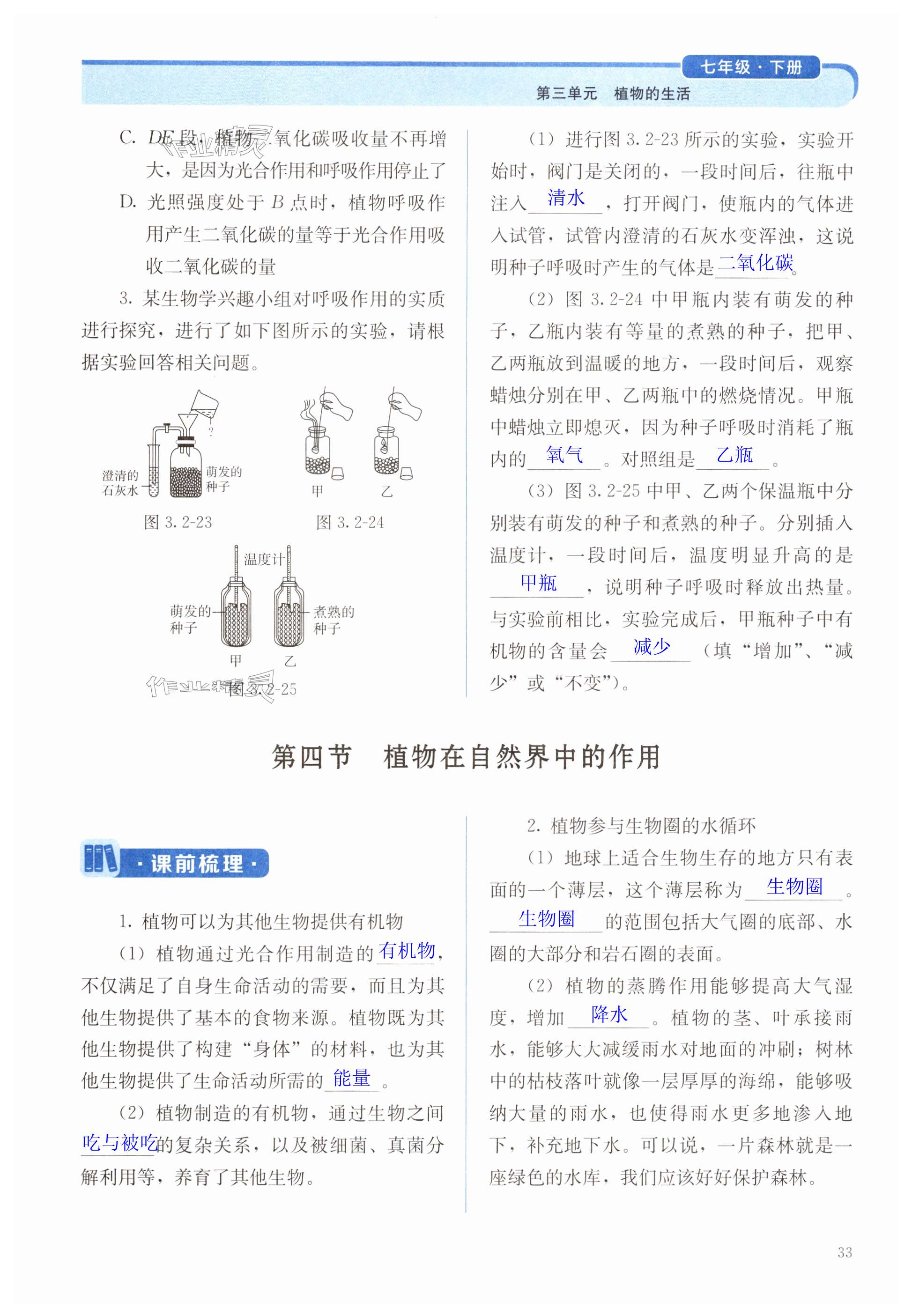 注:目前有些书本章节名称可能整理的还不是很完善,但都是按照顺序排列的,请同学们按照顺序仔细查找。练习册 2025年人教金学典同步练习册同步解析与测评七年级生物下册人教版山西专版 答案主要是用来给同学们做完题方便对答案用的,请勿直接抄袭。