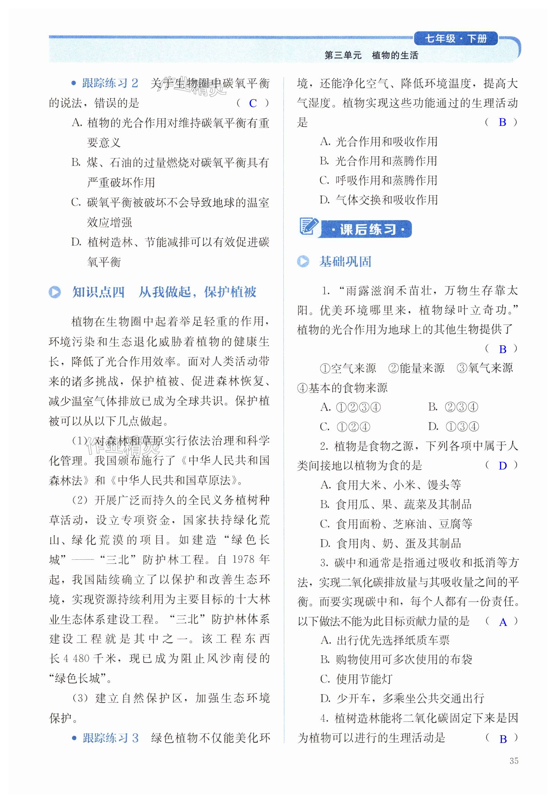 注:目前有些书本章节名称可能整理的还不是很完善,但都是按照顺序排列的,请同学们按照顺序仔细查找。练习册 2025年人教金学典同步练习册同步解析与测评七年级生物下册人教版山西专版 答案主要是用来给同学们做完题方便对答案用的,请勿直接抄袭。
