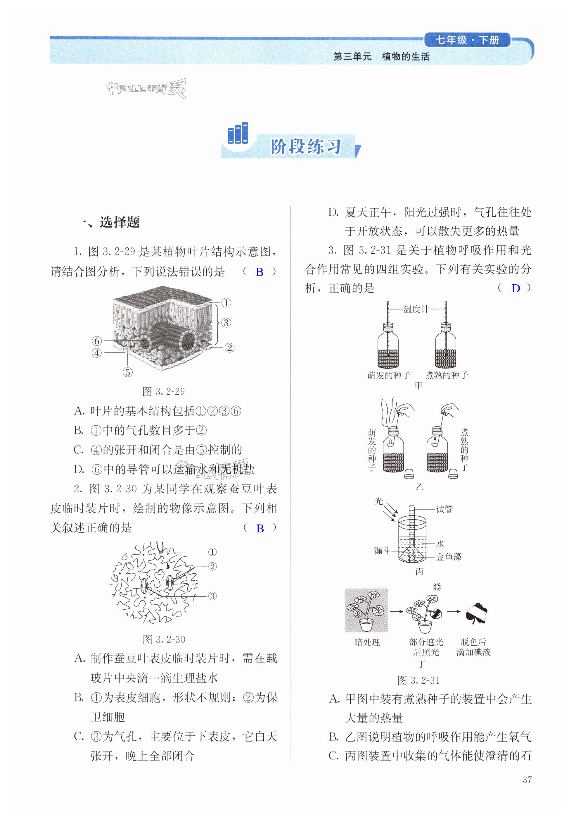 注:目前有些书本章节名称可能整理的还不是很完善,但都是按照顺序排列的,请同学们按照顺序仔细查找。练习册 2025年人教金学典同步练习册同步解析与测评七年级生物下册人教版山西专版 答案主要是用来给同学们做完题方便对答案用的,请勿直接抄袭。