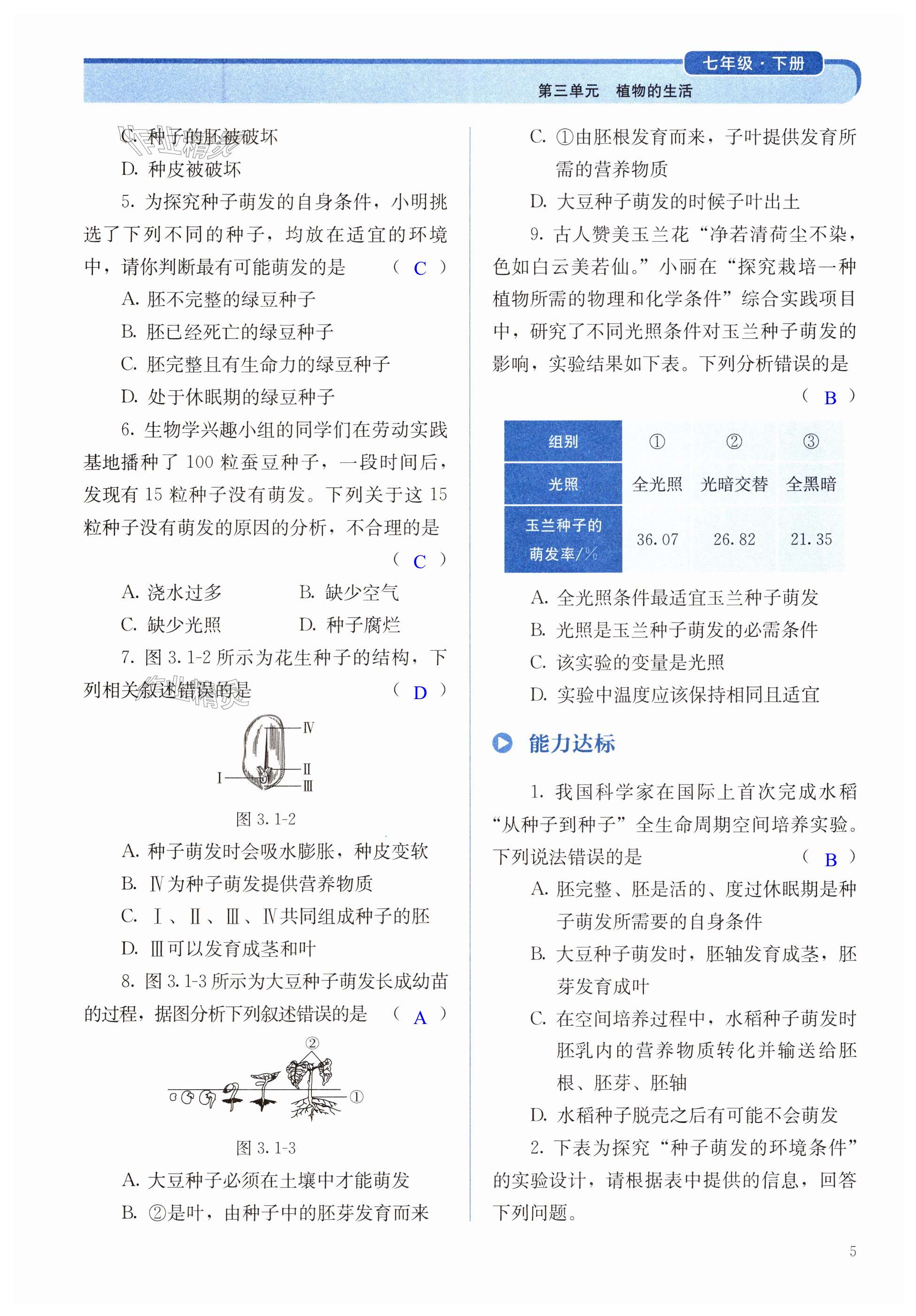 注:目前有些书本章节名称可能整理的还不是很完善,但都是按照顺序排列的,请同学们按照顺序仔细查找。练习册 2025年人教金学典同步练习册同步解析与测评七年级生物下册人教版山西专版 答案主要是用来给同学们做完题方便对答案用的,请勿直接抄袭。