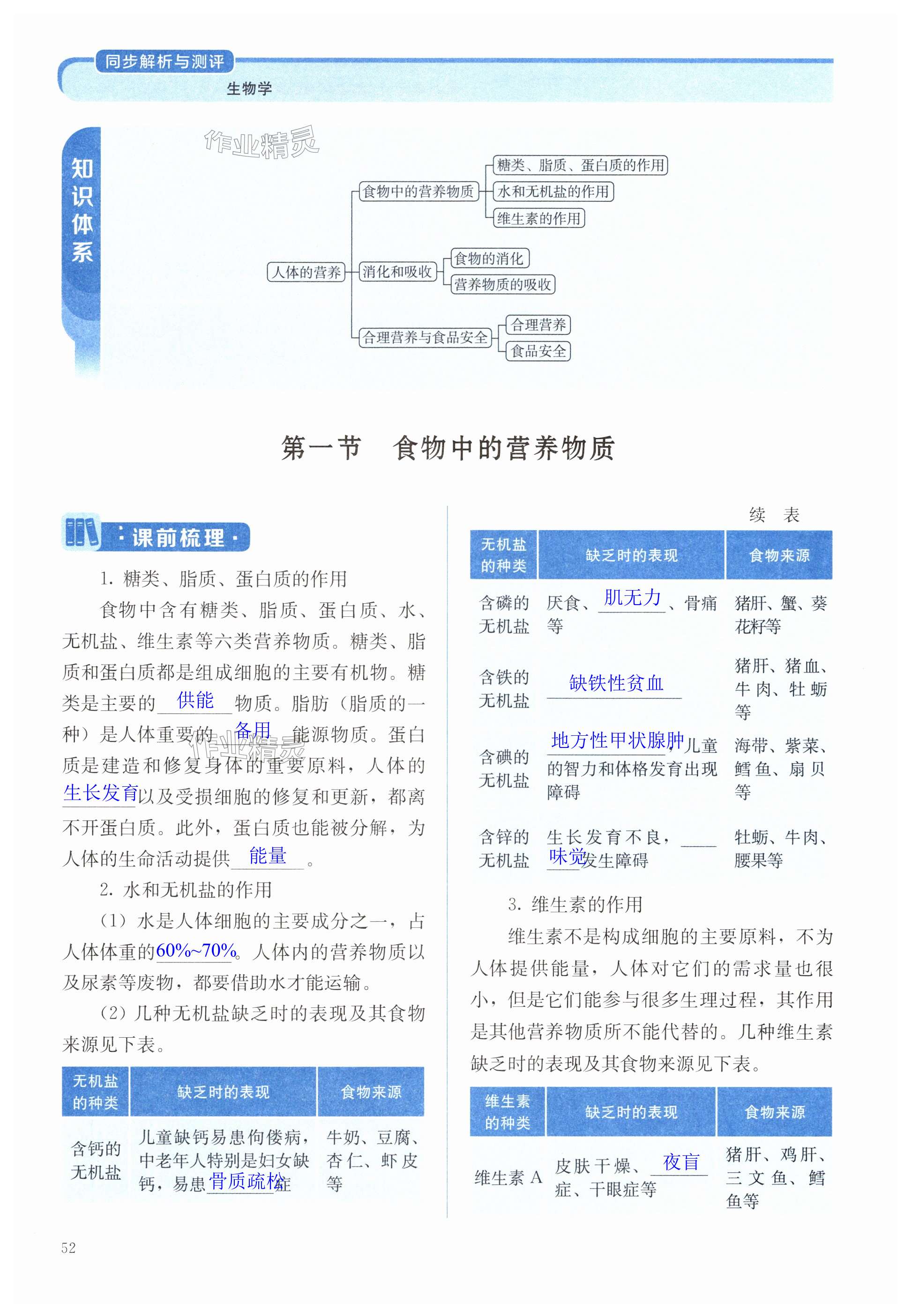 注:目前有些书本章节名称可能整理的还不是很完善,但都是按照顺序排列的,请同学们按照顺序仔细查找。练习册 2025年人教金学典同步练习册同步解析与测评七年级生物下册人教版山西专版 答案主要是用来给同学们做完题方便对答案用的,请勿直接抄袭。