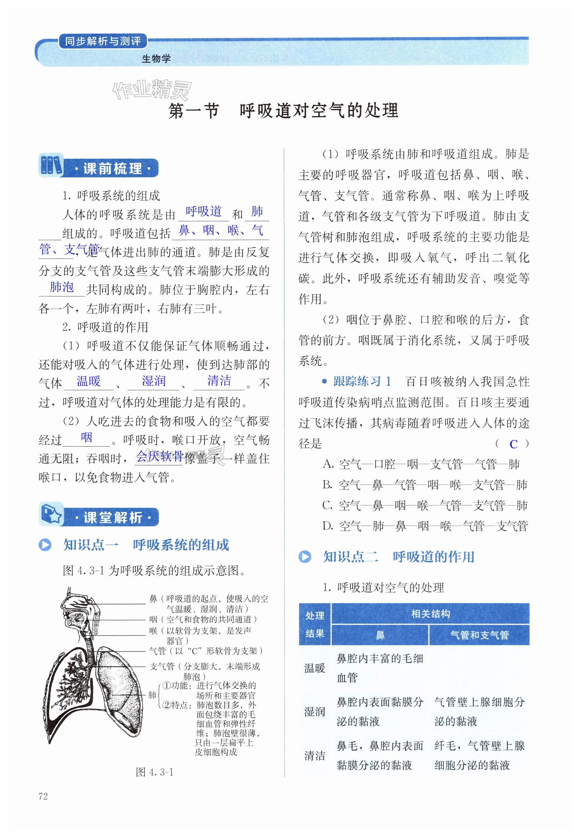 注:目前有些书本章节名称可能整理的还不是很完善,但都是按照顺序排列的,请同学们按照顺序仔细查找。练习册 2025年人教金学典同步练习册同步解析与测评七年级生物下册人教版山西专版 答案主要是用来给同学们做完题方便对答案用的,请勿直接抄袭。