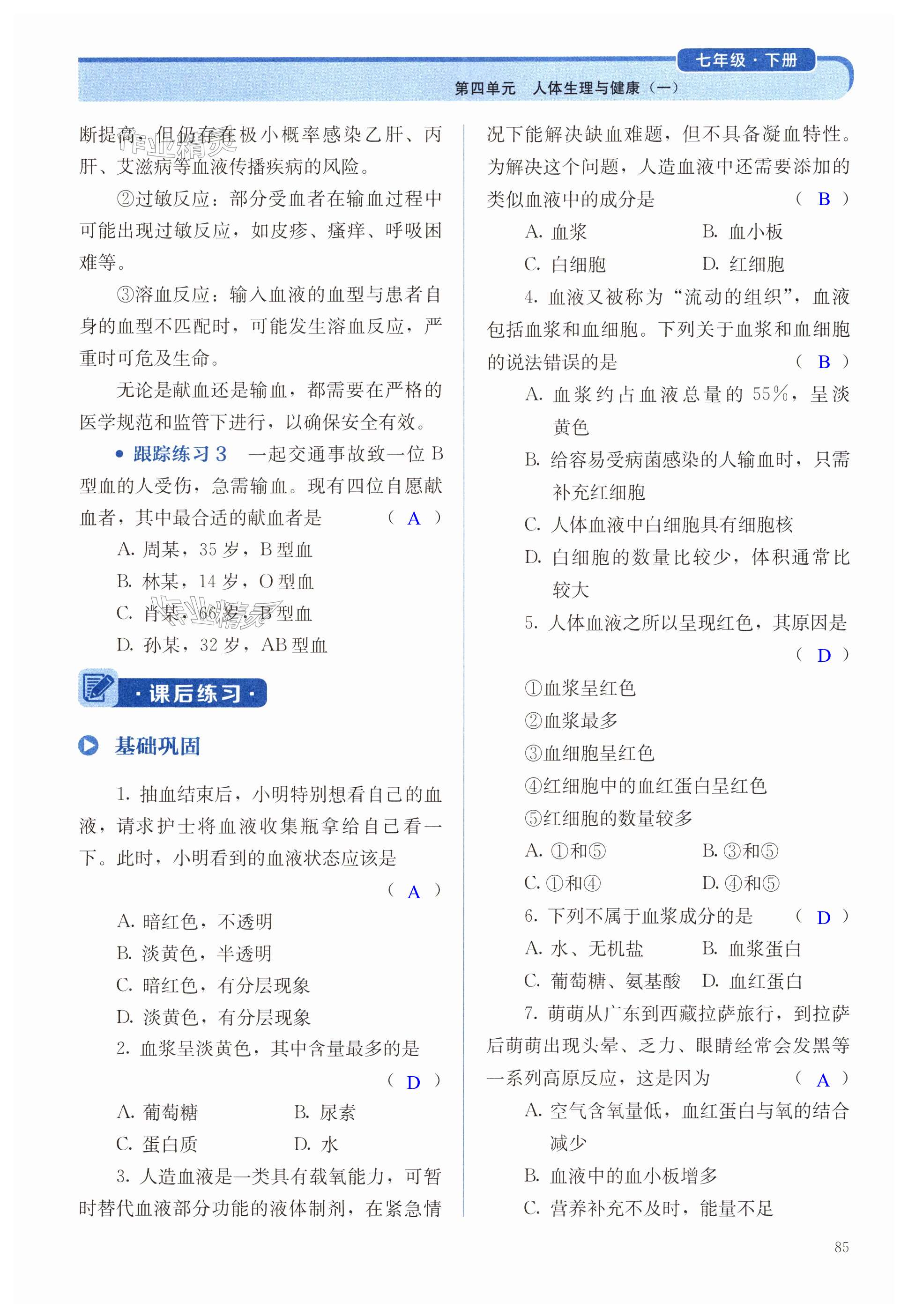 注:目前有些书本章节名称可能整理的还不是很完善,但都是按照顺序排列的,请同学们按照顺序仔细查找。练习册 2025年人教金学典同步练习册同步解析与测评七年级生物下册人教版山西专版 答案主要是用来给同学们做完题方便对答案用的,请勿直接抄袭。