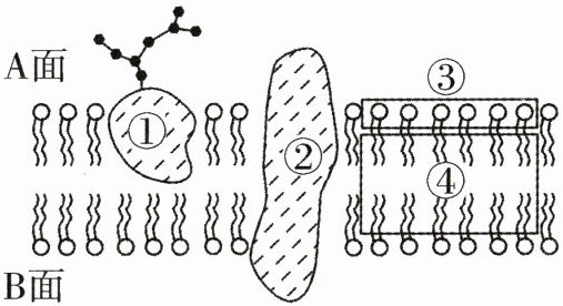 A. A面是细胞膜的外侧,B面是细胞膜的内侧