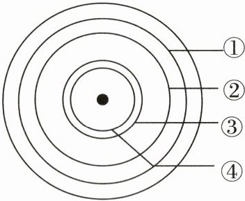 10. (形式创新)[2024深圳中学高一期末]在进行光合色素的提取和分离实验时,取一圆形滤纸,在滤纸中央滴一滴色素提取液,再滴一滴层析液,将会得到近似同心的四个色素环,如图。下列说法错误的是 ( )