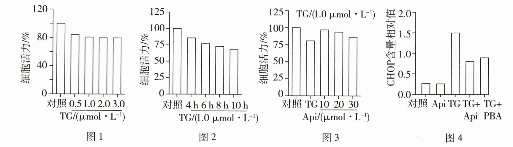 (2)图1、图2、图3实验的自变量分别为____________________。由图3可知,Api对TG所致内质网应激诱导的细胞凋亡的影响为______________________________。