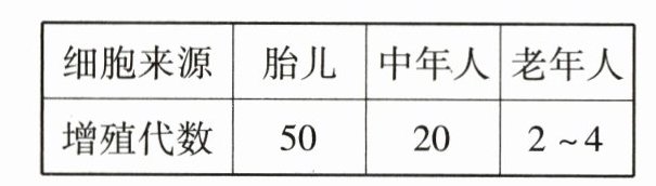 实验Ⅰ:在相同的条件下,体外分别培养胎儿、中年人和老年人的肺成纤维细胞,结果如表所示。