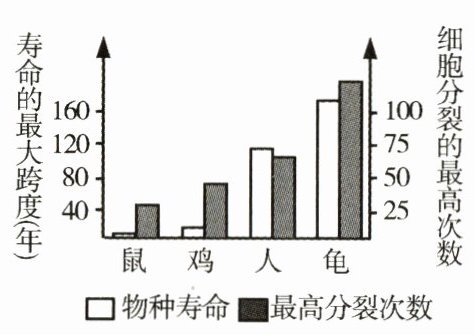 (2)细胞分裂次数与具体物种的特异性有关,一般来讲,寿命越长的物种,体细胞分裂的最高次数越高(2分) 细胞核是决定细胞衰老的重要因素(2分)