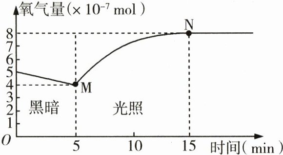 D. 若0~15 min区间水稻叶片的呼吸速率不变,则其通过光合作用产生的氧气量为6×10⁻⁷ mol