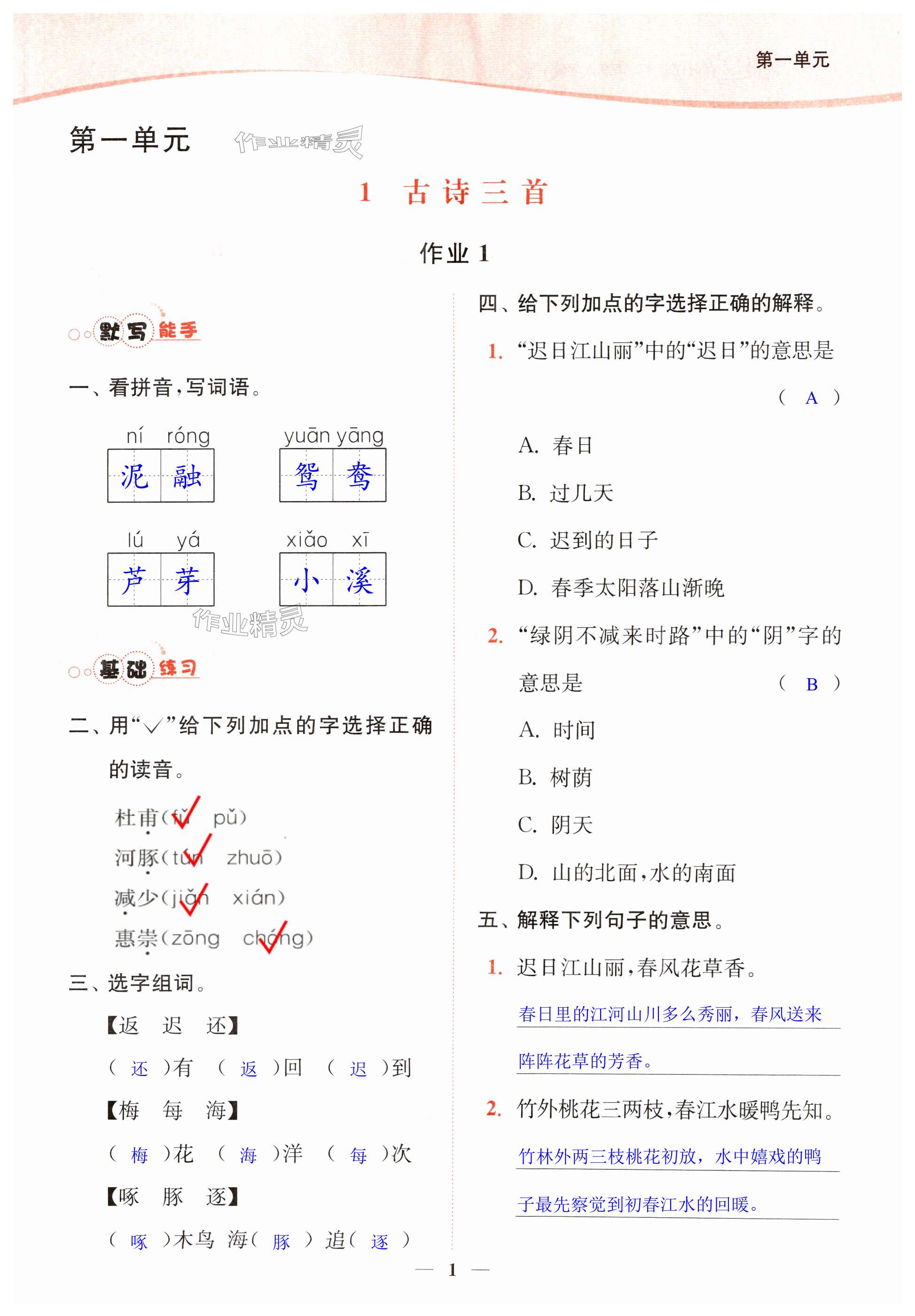 注:目前有些书本章节名称可能整理的还不是很完善,但都是按照顺序排列的,请同学们按照顺序仔细查找。练习册2025年南通小题课时作业本三年级语文下册人教版答案主要是用来给同学们做完题方便对答案用的,请勿直接抄袭。