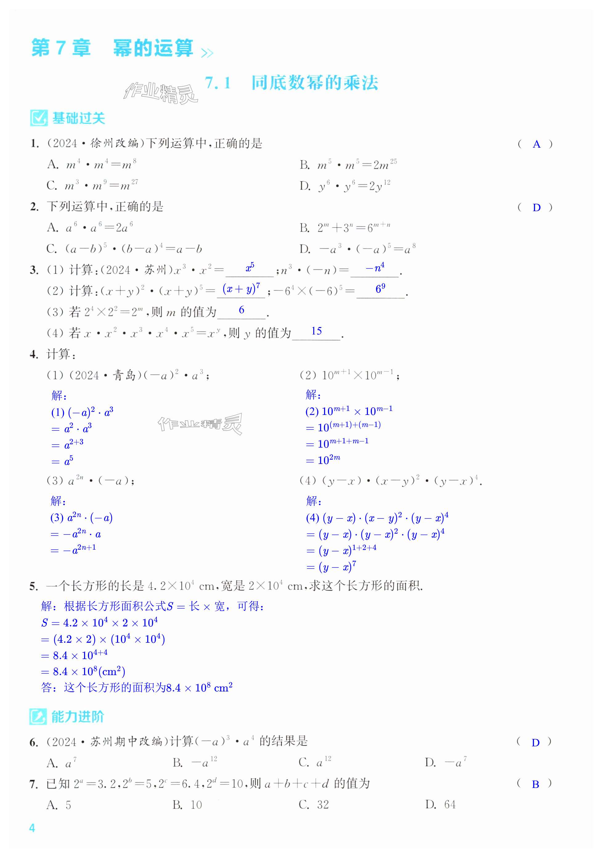 注:目前有些书本章节名称可能整理的还不是很完善,但都是按照顺序排列的,请同学们按照顺序仔细查找。练习册 2025年通成学典课时作业本七年级数学下册苏科版苏州专版 答案主要是用来给同学们做完题方便对答案用的,请勿直接抄袭。