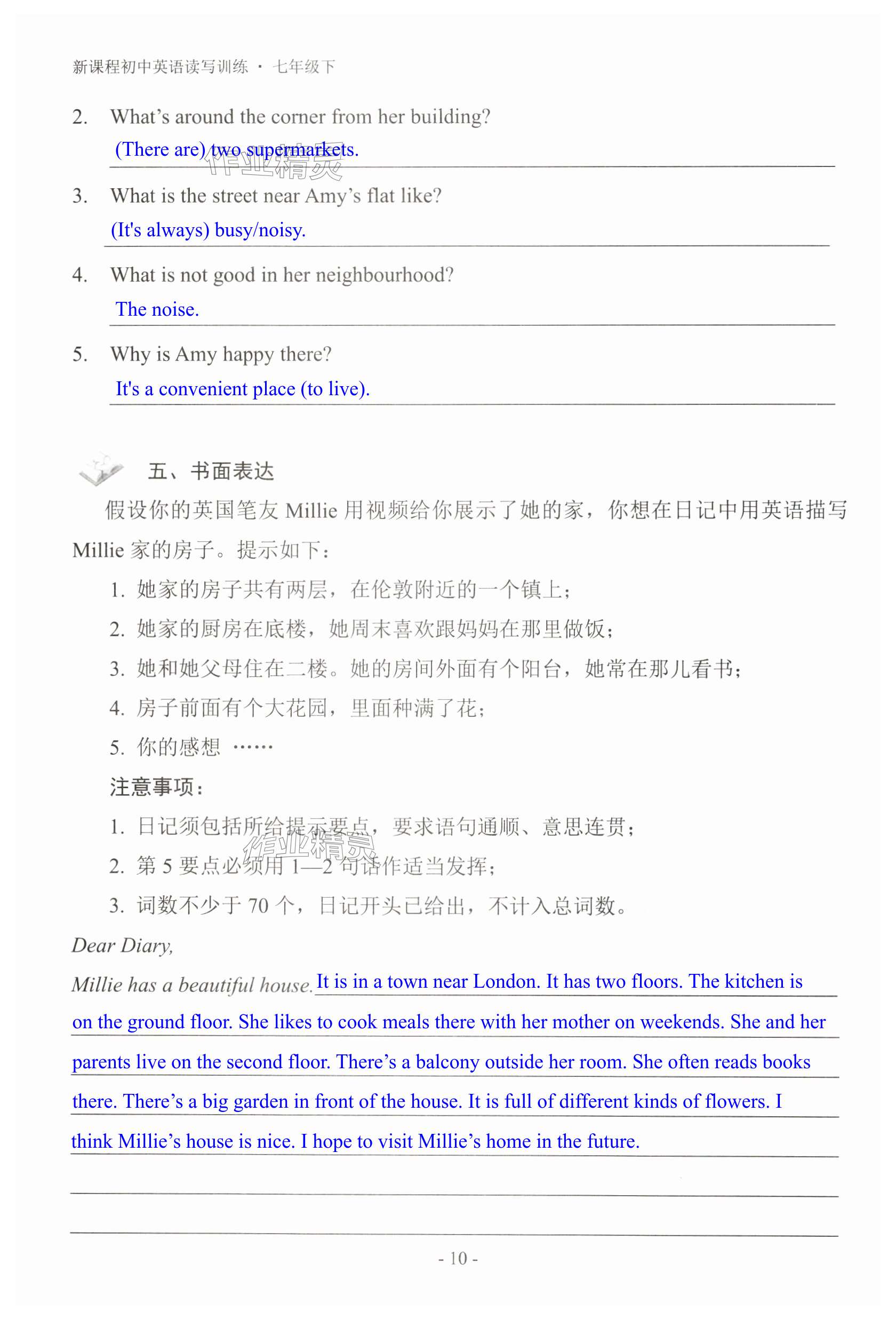 注:目前有些书本章节名称可能整理的还不是很完善,但都是按照顺序排列的,请同学们按照顺序仔细查找。练习册 2025年新课程英语读写训练七年级下册译林版 答案主要是用来给同学们做完题方便对答案用的,请勿直接抄袭。
