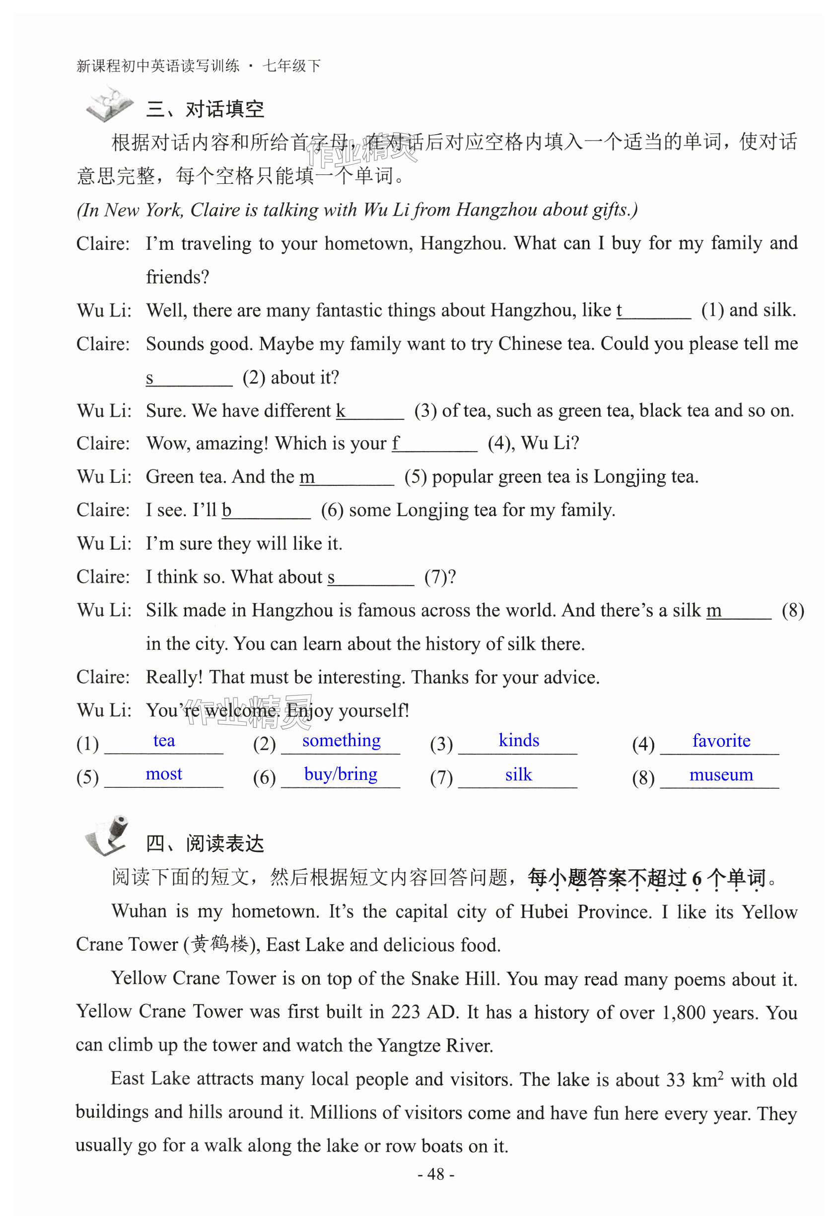 注:目前有些书本章节名称可能整理的还不是很完善,但都是按照顺序排列的,请同学们按照顺序仔细查找。练习册 2025年新课程英语读写训练七年级下册译林版 答案主要是用来给同学们做完题方便对答案用的,请勿直接抄袭。