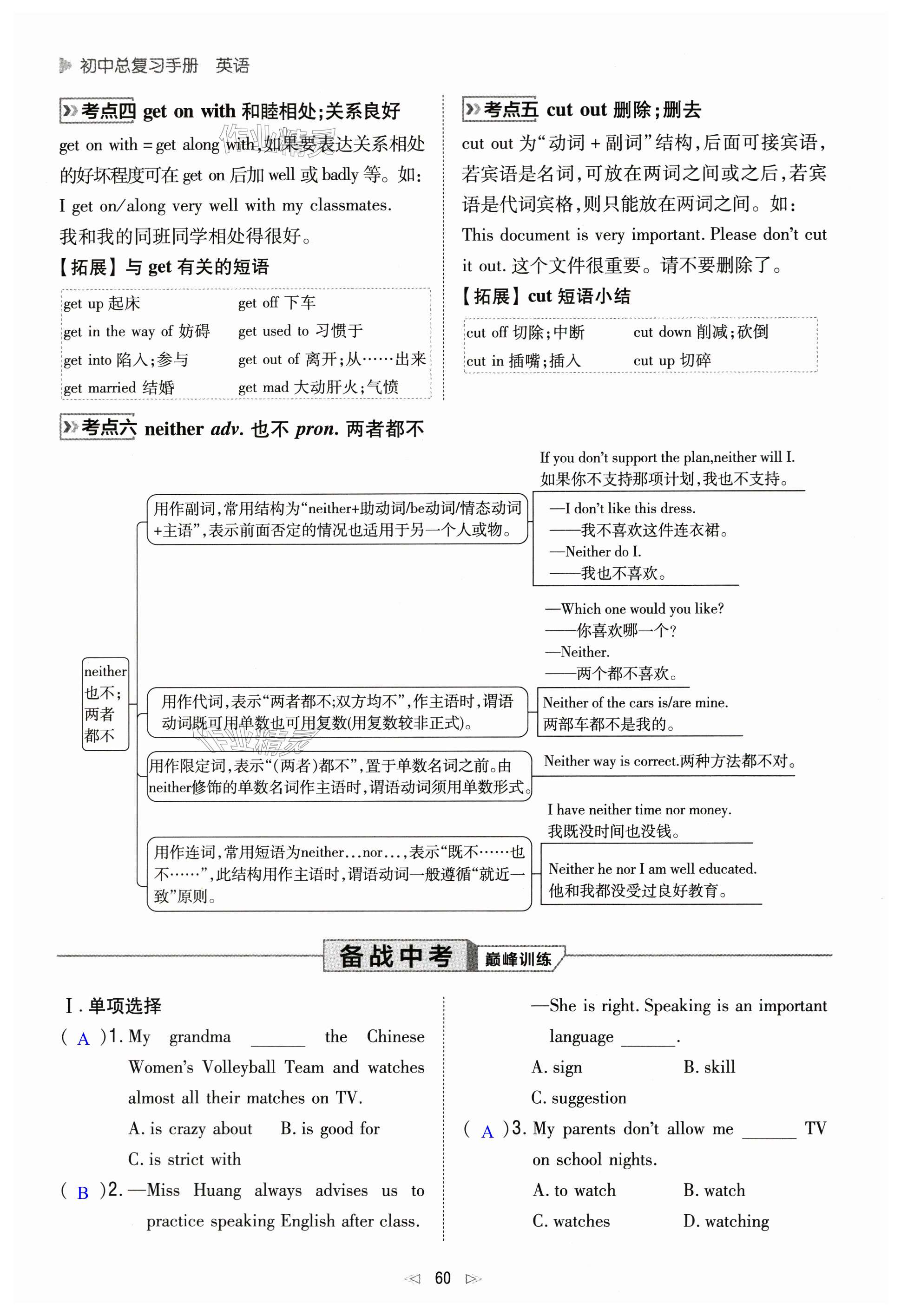 注:目前有些书本章节名称可能整理的还不是很完善,但都是按照顺序排列的,请同学们按照顺序仔细查找。练习册 2025年初中总复习手册新世纪出版社英语人教版 答案主要是用来给同学们做完题方便对答案用的,请勿直接抄袭。