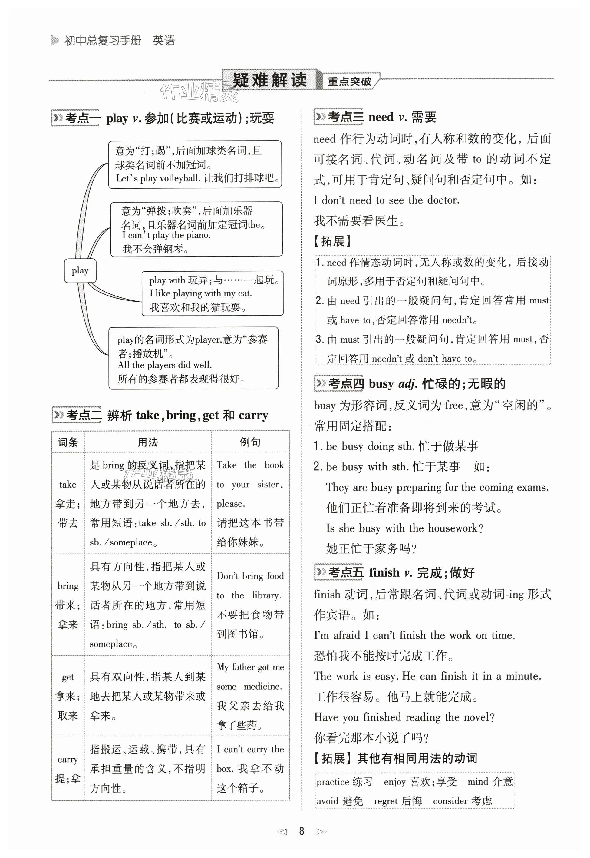 注:目前有些书本章节名称可能整理的还不是很完善,但都是按照顺序排列的,请同学们按照顺序仔细查找。练习册 2025年初中总复习手册新世纪出版社英语人教版 答案主要是用来给同学们做完题方便对答案用的,请勿直接抄袭。