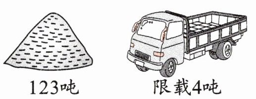 2. 123÷4 = 30(辆)……3(吨),30 + 1 = 31(辆)