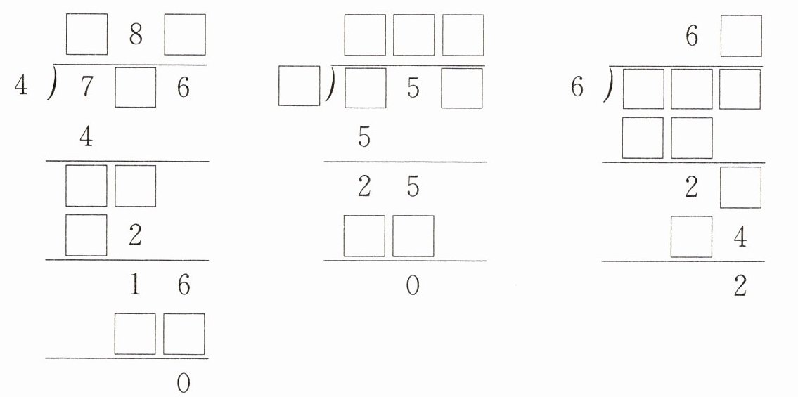 2. 45$\square$÷5 的商是( )位数,要使商的末尾是 0,$\square$里最小填( ),最大填( )。