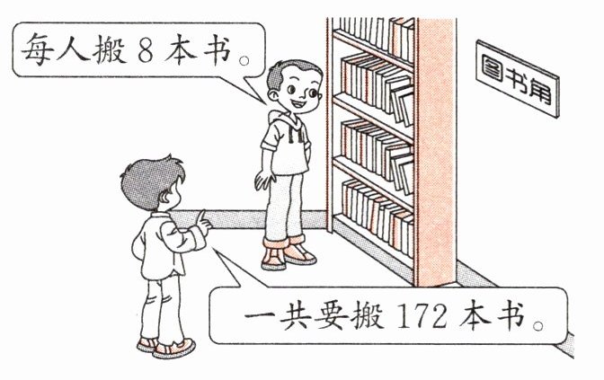 答:不能一次搬完。@@$172÷8 = 21$(名)……4(本)