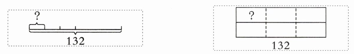 一 (唐山市古冶区)三年级有 2 个班,每个班有 3 个小组,共植树 132 棵,平均每个小组植树多少棵?将题中的图与对应的算式连起来。