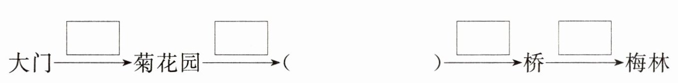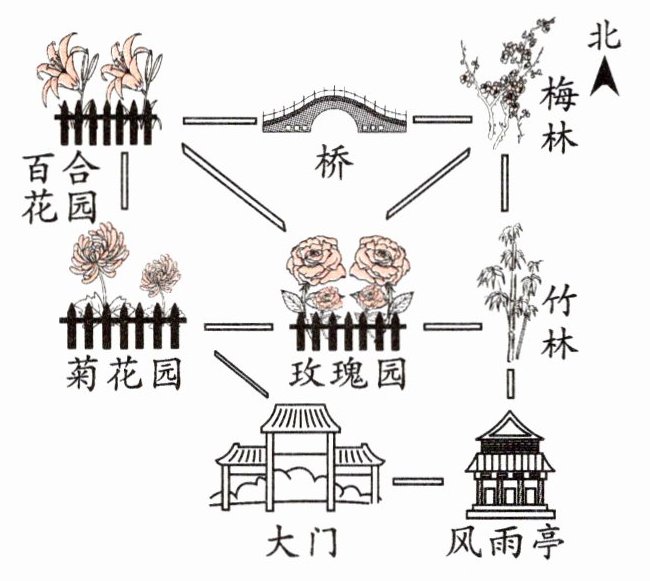 2. 竹林在大门的( )方向;桥的( )方向是菊花园。