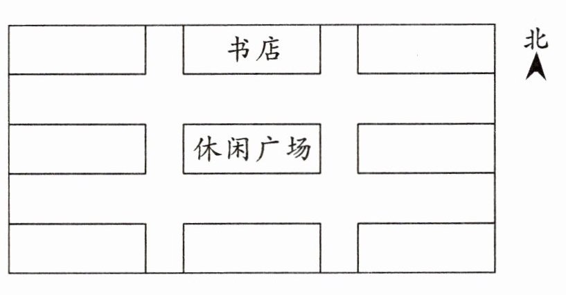 光明小学在社区的东北角,书店的西面是体育场,邮电局在休闲广场的西面,小芳家和图书馆分别在社区的东南角和西南角,小华家在小芳家的北面,休闲广场的南面是超市。