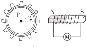 例2 汽车自动控制刹车系统(ABS)的原理如图所示。铁质齿轮P与车轮同步转动,右端有一个绕有线圈的磁体(极性如图),M是一个电流检测器。当车轮带动齿轮P转动时,靠近线圈的铁齿被磁化,使通过线圈的磁通量增大,铁齿离开线圈时又使通过线圈的磁通量减小,从而能使线圈中产生感应电流,感应电流经电子装置放大后即实现自动控制刹车。齿轮从图示位置开始转到下一个铁齿正对线圈的过程中,通过M的感应电流的方向 ( )