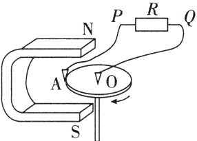 [变式训练3] 如图所示,一个金属圆盘安装在竖直的转动轴上,置于蹄形磁体之间,两块铜片A、O分别与金属盘的边缘和转动轴接触。若使金属盘按图示方向(俯视顺时针方向)转动起来,下列说法正确的是 ( )