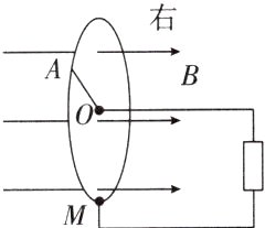粗细均匀的铜导线制成半径为l、电阻为4R的圆环,圆心位于O点,圆环所在空间存在垂直于圆环平面的匀强磁场,磁感应强度大小为B。另一长为l、电阻为$\frac{R}{2}$的金属棒OA可绕转动轴O转动,A端与金属圆环接触,一阻值也为$\frac{R}{2}$的定值电阻通过导线分别与金属圆环的圆心O及圆环边缘M点连接。使金属棒OA绕轴O以角速度ω顺时针转动(从右侧看),定值电阻中有电流流过。设流过定值电阻的电流为I,金属圆环的热功率为P,下列关于电流I的范围和金属圆环的热功率P的最大值正确的是( )