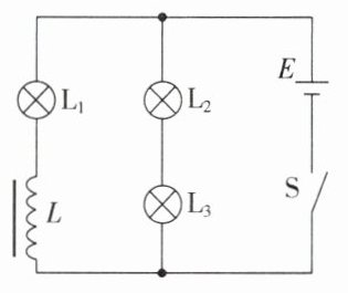 提示:开关S接通瞬间,可认为R与$A_{2}$并联后与$A_{1}$串联;开关S断开时,可认为L与$A_{1}$形成闭合回路。