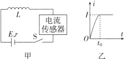 例3(多选)用电流传感器研究自感现象的电路如图甲所示,线圈L中未插入铁芯,直流电阻为R。闭合开关S,传感器记录了电路中电流i随时间t变化的关系图像,如图乙所示,$t_{0}$时刻电路中电流达到稳定值I。下列说法中正确的是( )