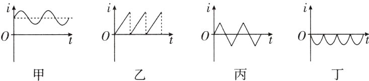(1)提示:判断电流为交变电流还是直流就看电流方向是否随时间变化。如图甲、乙、丁,尽管电流大小随时间做周期性变化,但因其方向不变,故仍是直流。只有丙是交流。