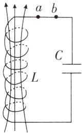 D. 若磁场正在增强,则电容器正在充电,电流方向由a向b