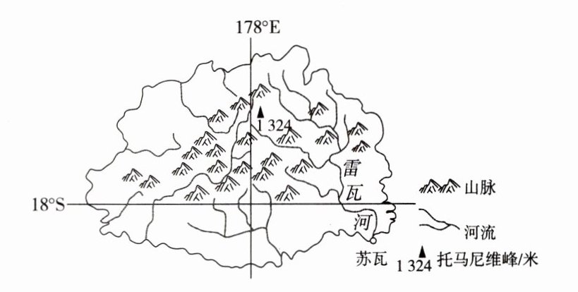 斐济是南太平洋上远离大陆的岛国,是21世纪海上丝绸之路上的重要国家之一。维提岛是斐济最大岛屿(如图所示),面积10.429平方千米。年均温25℃,年降水量2 000毫米左右,但该岛的降水地区差异明显。该岛盛产椰子,同时也是斐济最主要的甘蔗种植地。