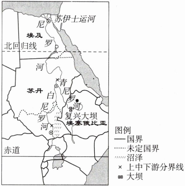 (2)埃塞俄比亚在尼罗河上游建设水电站,为什么下游的埃及、苏丹等国会极为关注?
