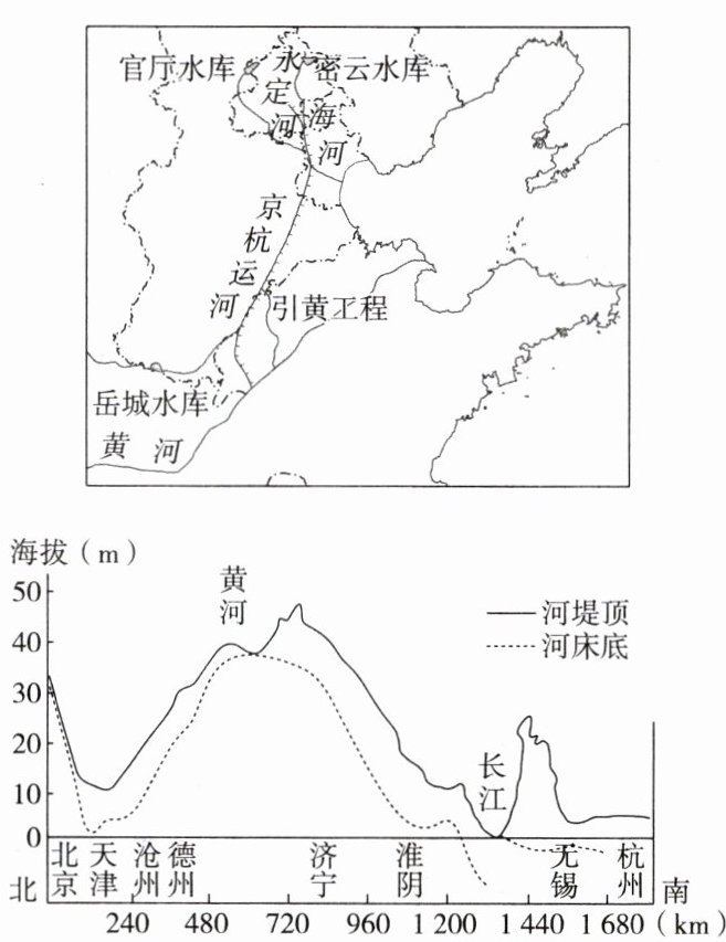 (1)分析 20 世纪初起,京杭运河黄河以北河段缺水断流的原因。