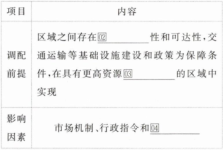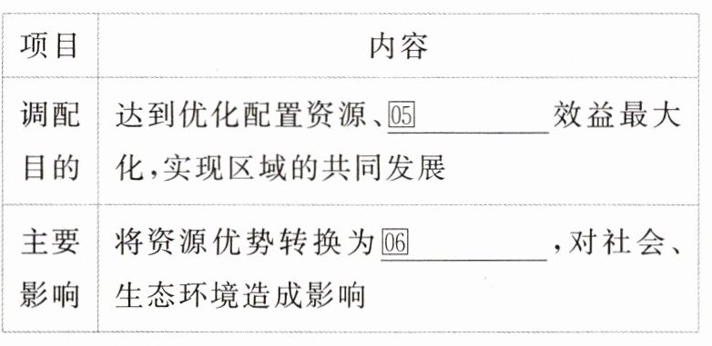1. 调配原因:国家为了解决国内资源及其产品生产和消费的 01 ____ 不匹配问题。