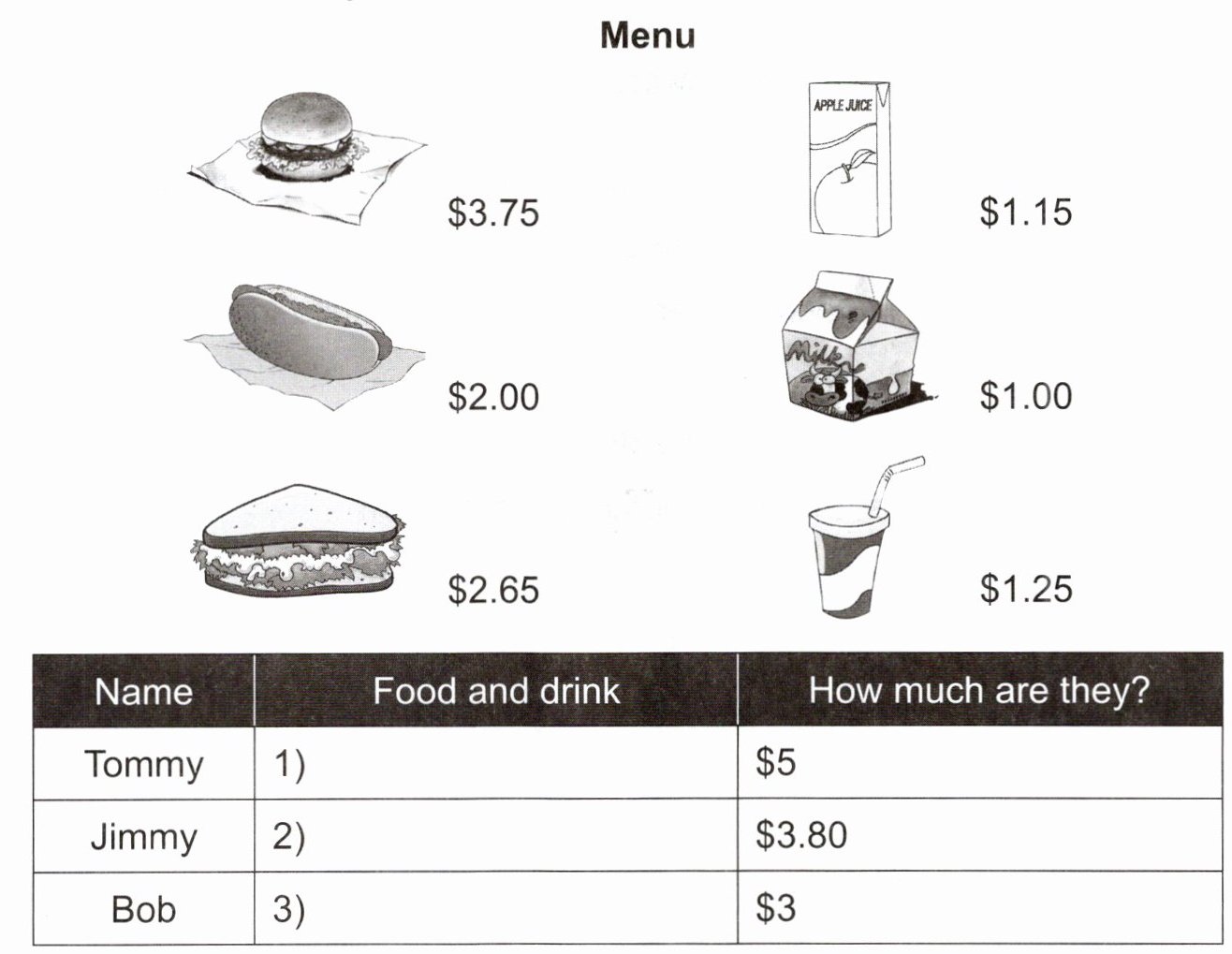 Tommy, Jimmy and Bob are in the restaurant. They are going to have lunch. What do they want?
